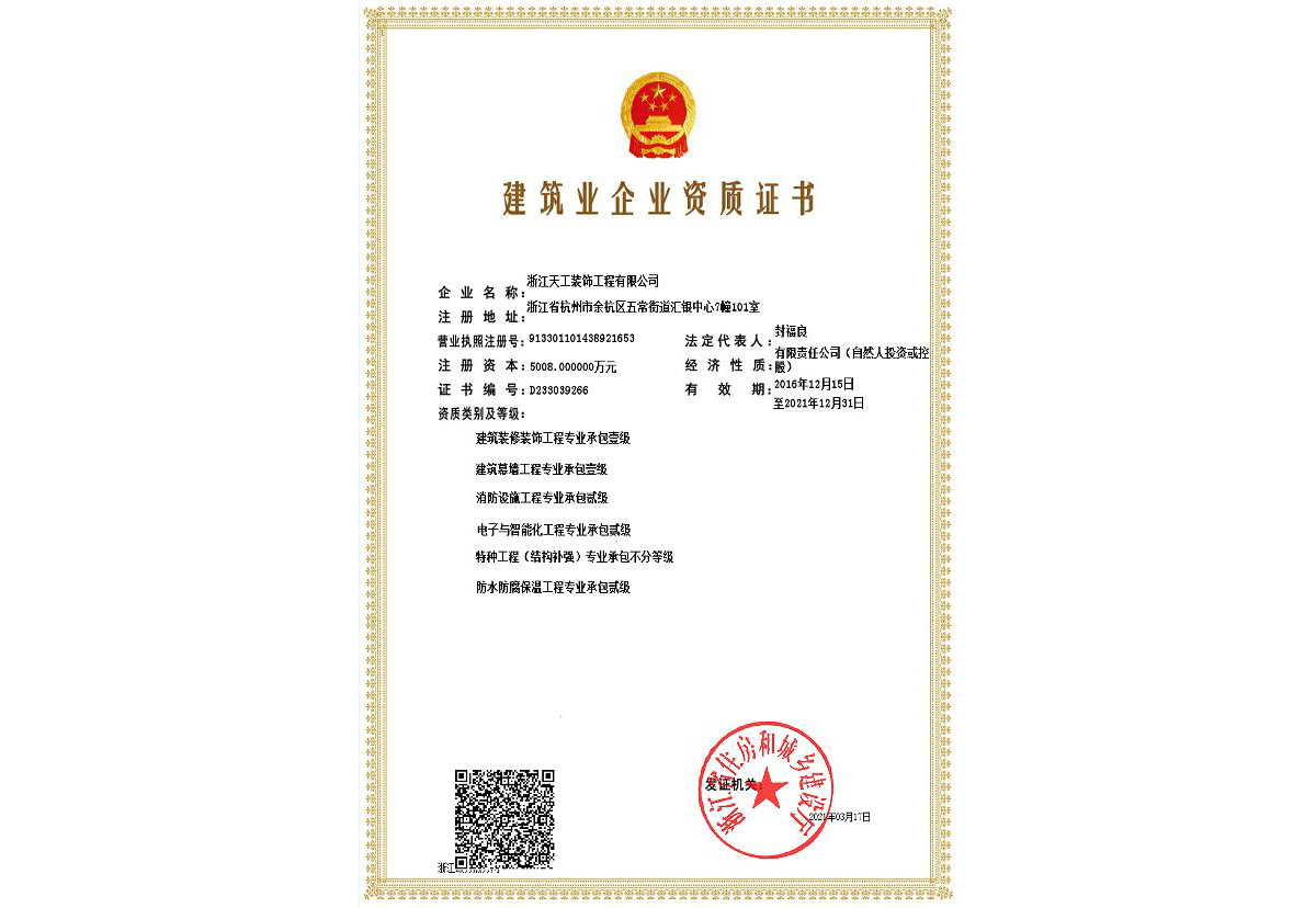 浙江天工裝飾工程有限公司成立于1994年,是一家專注于建筑行業(yè)近三十年,余杭區(qū)內(nèi)規(guī)模最大、最專業(yè)的現(xiàn)代化專業(yè)承包企業(yè),連續(xù)十二年榮獲“余杭區(qū)建筑業(yè)十強(qiáng)企業(yè)”稱號。公司現(xiàn)任余杭區(qū)建筑裝飾行業(yè)協(xié)會會長單位、杭州市建筑裝飾行業(yè)協(xié)會副會長單位、浙江省建筑裝飾行業(yè)協(xié)會副會長單位、中國建筑裝飾協(xié)會理事單位。公司具備建筑裝修裝飾工程專業(yè)承包壹級、建筑幕墻工程專業(yè)承包壹級、建筑裝飾工程設(shè)計(jì)專項(xiàng)甲級、建筑幕墻工程設(shè)計(jì)專項(xiàng)甲級、展覽陳列工程設(shè)計(jì)施工一體化貳級、電子與智能化工程專業(yè)承包貳級、消防設(shè)施工程專業(yè)承包貳級、防水防腐保溫工程專業(yè)承包貳級,集建筑工程施工總承包、建筑機(jī)電安裝、城市及道路照明、鋼結(jié)構(gòu)、結(jié)構(gòu)補(bǔ)強(qiáng)、安防施工等多項(xiàng)資質(zhì)。主要從事大型公共建筑、星級酒店的室內(nèi)精裝修、建筑幕墻及建筑智能化工程的設(shè)計(jì)與施工。 天工裝飾始終把建筑裝飾當(dāng)作一項(xiàng) “美的事業(yè)”,在施工中嚴(yán)把質(zhì)量關(guān),不斷規(guī)范和提升工程技術(shù)標(biāo)準(zhǔn)。近年來,公司承建的浙商開元名都國際酒店I標(biāo)段裝飾工程、杭州藝尚雷迪森廣場酒店裝修工程、余杭區(qū)時代廣場5號樓(市民之家)室內(nèi)裝飾工程、永安之星室內(nèi)裝飾工程、青山湖科技城創(chuàng)業(yè)廣場裝修工程、杭州未來科技城醫(yī)院室內(nèi)裝飾工程、杭州師范大學(xué)附屬實(shí)驗(yàn)學(xué)校裝修工程、杭州老板電器股份有限公司辦公樓裝飾工程、深川控股集團(tuán)綜合樓幕墻工程、浙江省科技信息研究院幕墻工程、北航杭州創(chuàng)新研究院(余杭)內(nèi)裝及智能化提升改造項(xiàng)目(研究生院)工程、臨平新城人才服務(wù)中心設(shè)計(jì)釆購施工(EPC)工程總承包項(xiàng)目、浙江大學(xué)先進(jìn)電氣裝備創(chuàng)新中心室內(nèi)外裝飾及改造項(xiàng)目設(shè)計(jì)采購施工(EPC)工程總承包項(xiàng)目等,先后獲得“中國建筑工程裝飾獎”、“全國建筑裝飾科技創(chuàng)新獎”、浙江省建設(shè)工程“錢江杯”優(yōu)質(zhì)工程獎、杭州市建設(shè)工程“西湖杯”優(yōu)質(zhì)工程獎、嘉興市建設(shè)工程“南湖杯”優(yōu)質(zhì)工程獎、“浙江省優(yōu)秀建筑裝飾工程獎”、“浙江省優(yōu)質(zhì)安裝質(zhì)量獎”等榮譽(yù)。 天工裝飾恪守“誠實(shí)守信、文明經(jīng)營”,近年來公司得到了客戶的信賴也獲得了業(yè)界的好評,先后被評為“國家級守合同重信用單位”、“全國建筑裝飾行業(yè)AAA級信用企業(yè)”、“全國百家科技創(chuàng)新型企業(yè)”、“浙江省AAA級守合同重信用單位”、“人民銀行信用等級AAA級企業(yè)”、“浙江省信用管理示范企業(yè)”、“浙江省誠信企業(yè)”、“浙江省建筑裝飾行業(yè)強(qiáng)優(yōu)企業(yè)”、“杭州市建筑業(yè)優(yōu)秀企業(yè)”、“余杭區(qū)建筑業(yè)十強(qiáng)企業(yè)”、 “余杭區(qū)人民政府質(zhì)量獎”等榮譽(yù)。